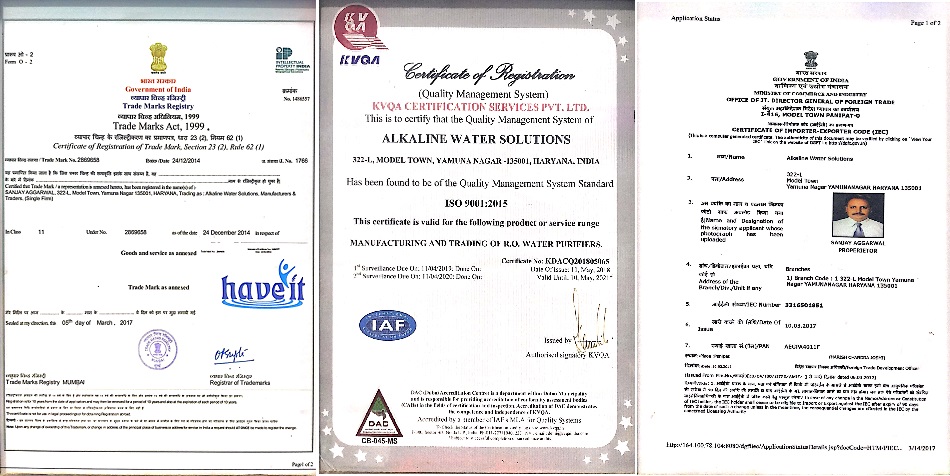 Alkaline Water Solutions was founded in Yamuna Nagar (Haryana) as Indian water treatment solutions provider. Alkaline Water Solutions is one of the leading Manufacturer and Supplier of Alkaline Water Purifiers and Alkaline Water Dispenser in Haryana under the Brand Name "Have it" We are an ISO 9001:2015 Certified Company and also have our own Import Export Code. We design and develop high quality alkaline water treatment products using latest technology according to market requirements. The Company deals in Special Kind of Alkaline (Domestic & Commercial) water purification systems which have miraculous health benefits. The Company works as per today’s scenario and trend, using the high-grade raw materials in manufacturing their products.
